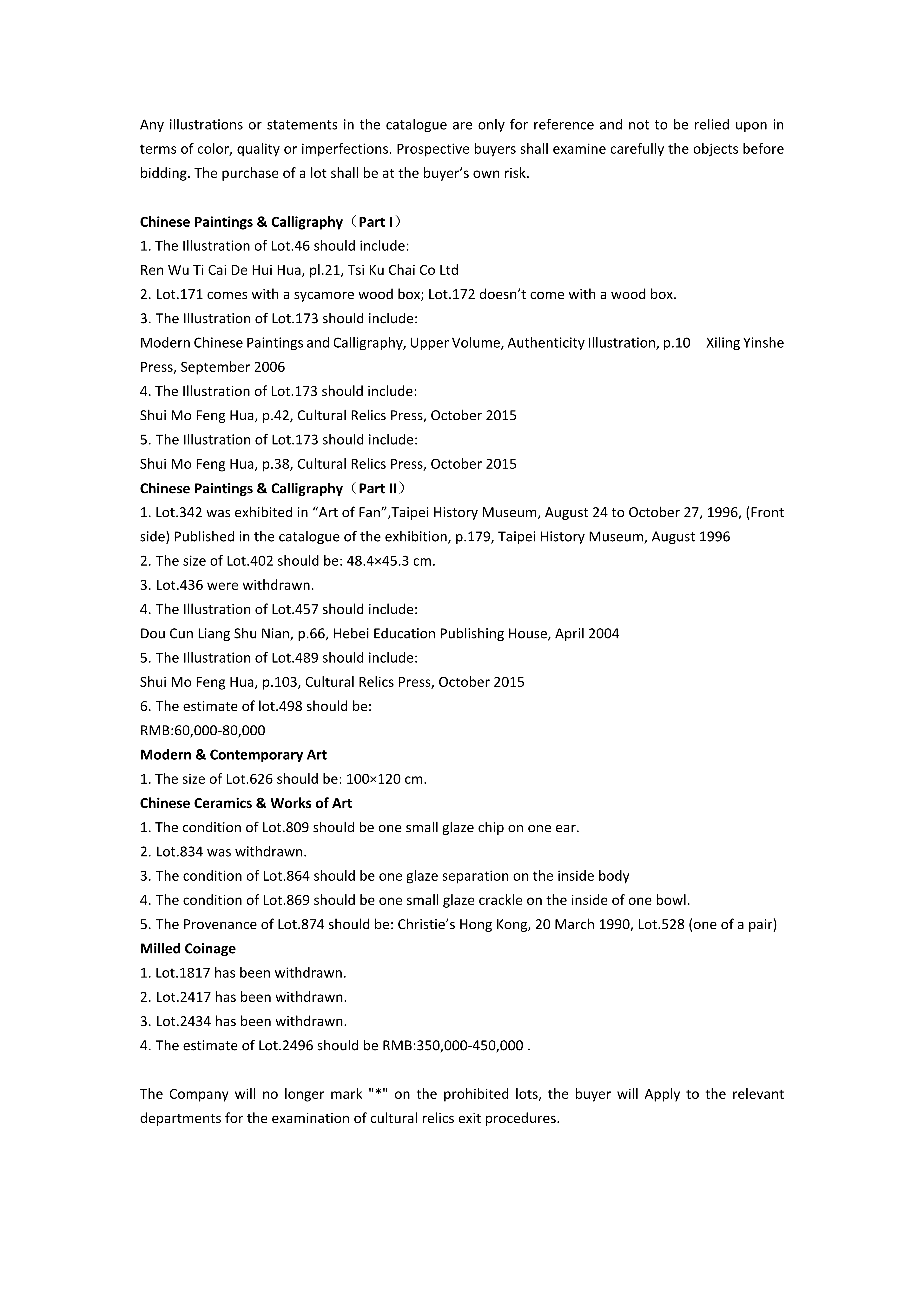 Statements and Corrections of Catalogues of 2024 Spring Auctions
