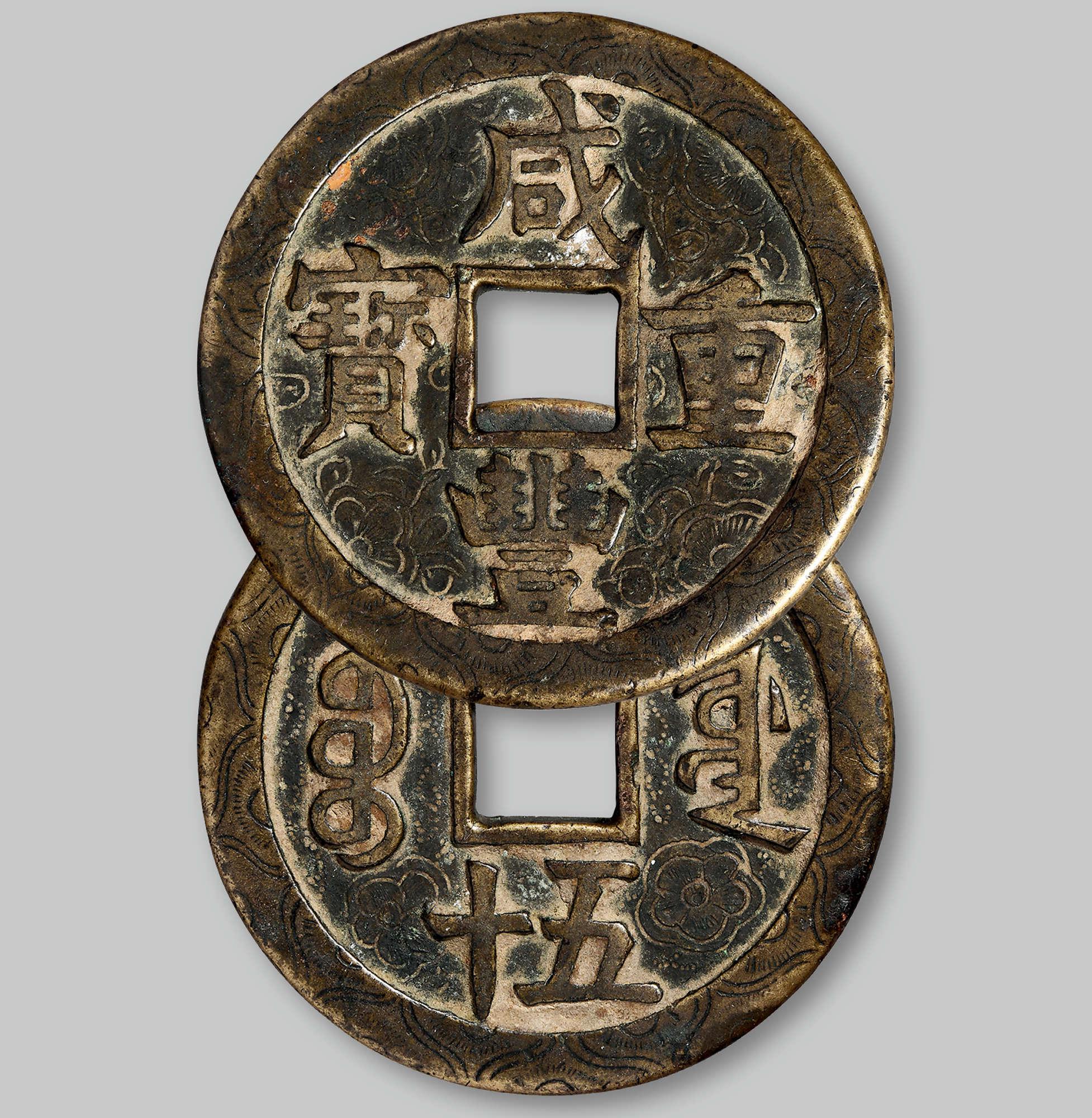 Ching Dynasty, Xian Fung Zhong Pao Charm Coin, 50 Cash, Dia.: 55mm, VF