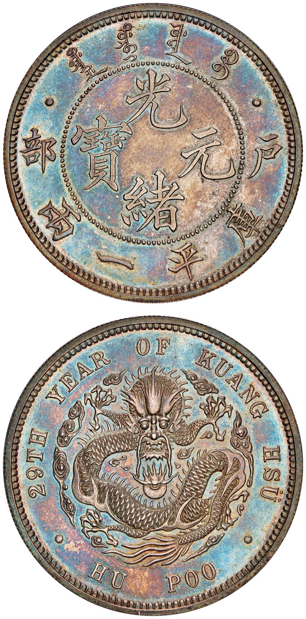 1903, Kuang Hsu Yuan Pao Silver Coin Pattern, 1 Tael, Hu-Poo, Unissued, Extremely Rare, PCGS SP63