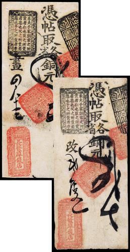 Ching Dynasty, Chang Fa Hou Native Bank, 2 Tiao, Peking, Total 2 pcs., XF