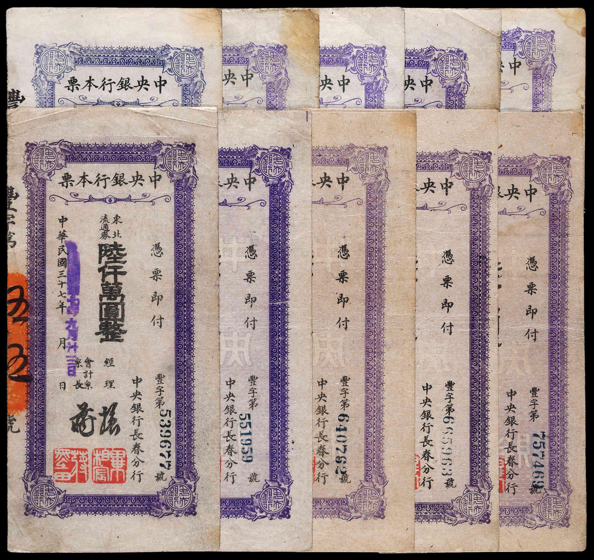 1948, The Central Bank of China Chang Chun Branch, 60 Million Yuan, Total 10 pcs., VF-XF
