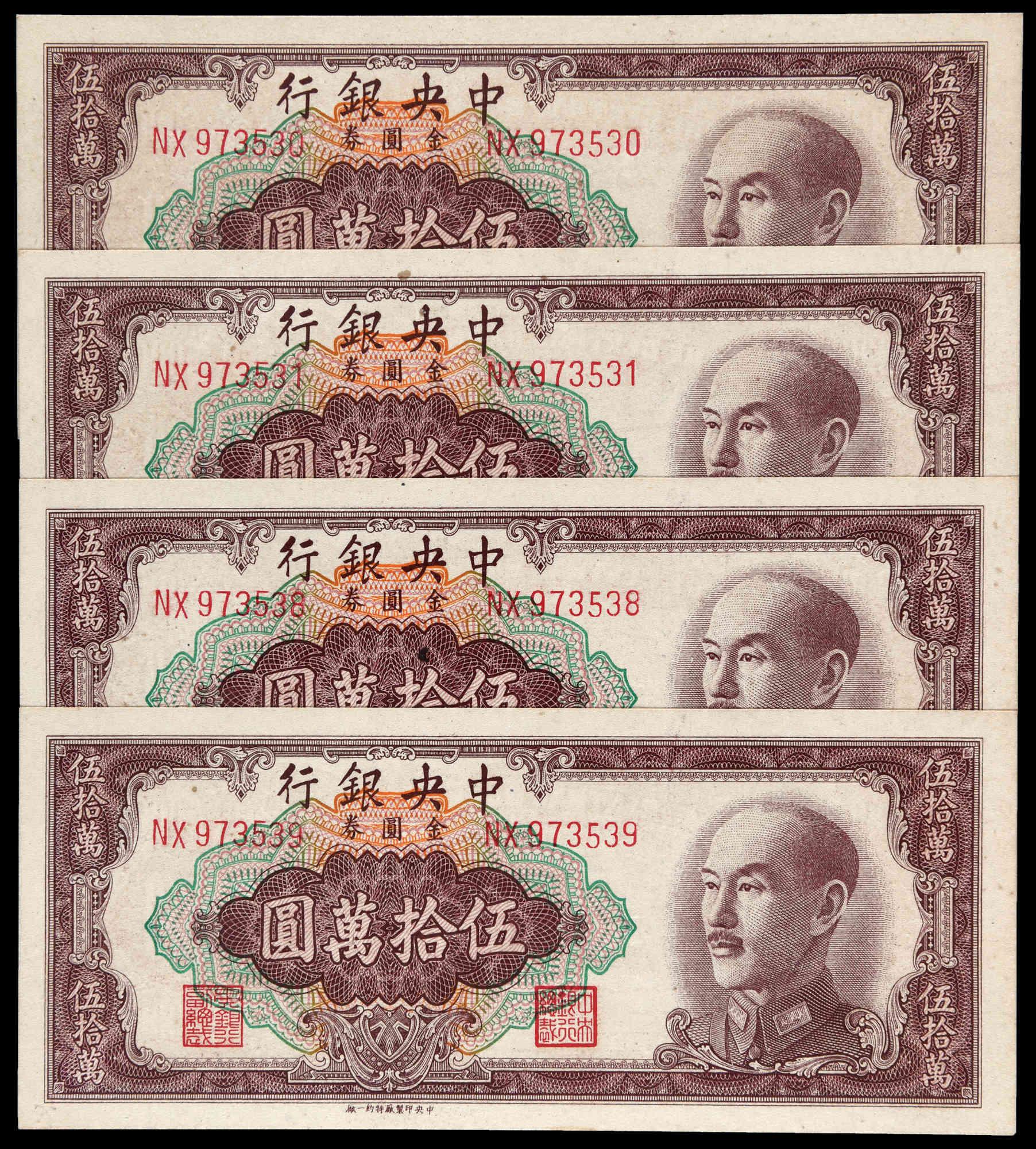 1949, The Central Bank of China, 500,000 Yuan, Total 4 pcs., AU