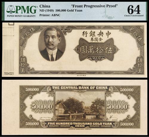 1949, The Central Bank of China, 500,000 Yuan, Specimen of Obv. and Rev., Total 2 pcs., Rare, PMG 64×2