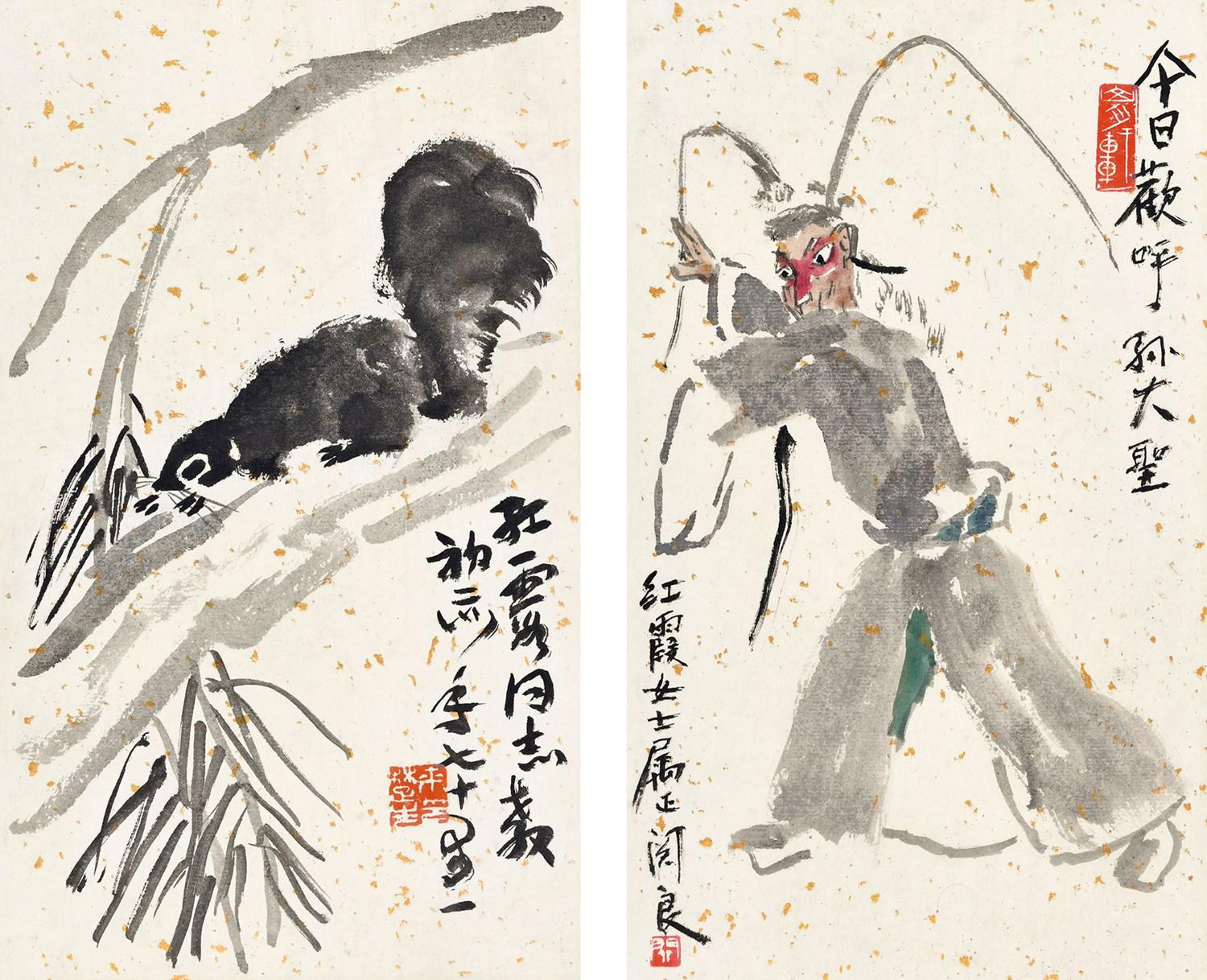 來(lái)楚生(shēng)·關良 松鼠·孫大(dà)聖雙面案屏