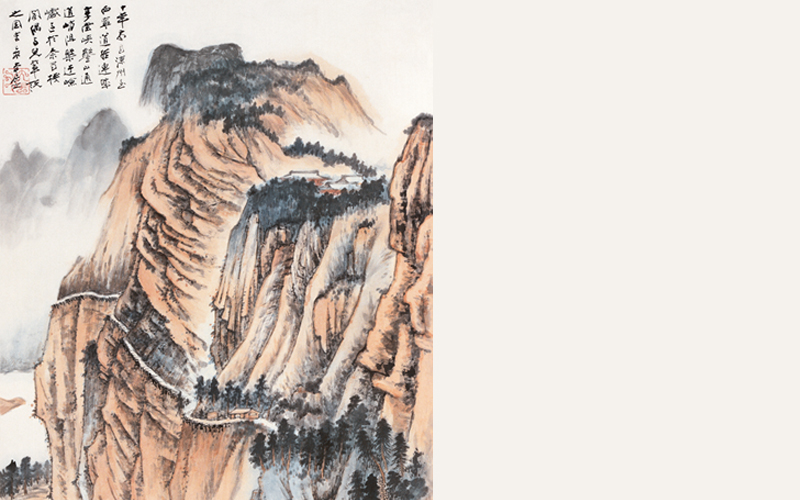 題識:十年前自涼州至西甯,道(dào)經連城享堂峽,鑿山(shān)通(tōng)道(dào),峭阻盤迂,險巘過于秦蜀棧閣,偶與兒輩說之,因寫。己亥。大(dà)千居士。