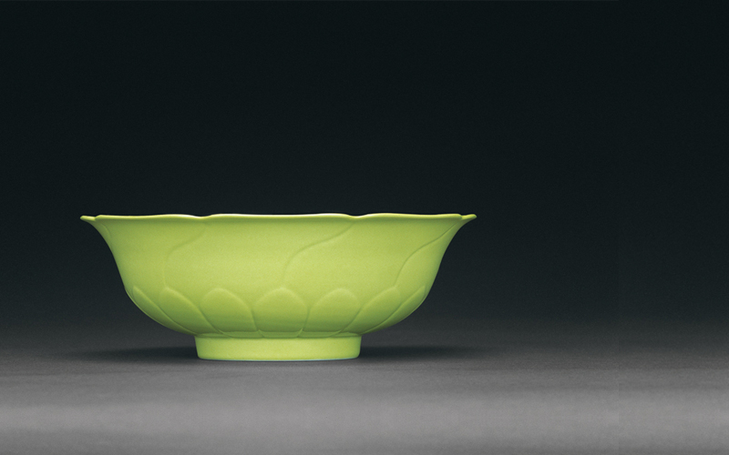 21cm. Diam. 同品種器(qì)以黃釉者曾見,厚釉者僅英國維多(duō)利亞和(hé)阿爾伯特博物館(the Victoria and Albert Museum)藏有(yǒu)15.5公分小(xiǎo)碗一件,而此尺寸之大(dà)碗未見海內(nèi)外公私著魁,極為(wèi)珍罕。