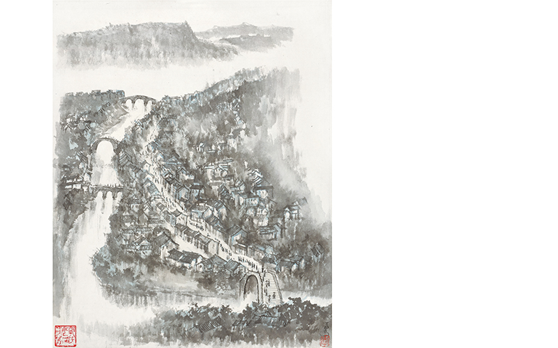 拍品《江城朝霧》作(zuò)于1956年重慶萬縣寫生(shēng)途中,收錄入1959年人(rén)民美術(shù)出版社出版的《李可(kě)染水(shuǐ)墨山(shān)水(shuǐ)寫生(shēng)畫(huà)集》,并被多(duō)位李可(kě)染研究者視(shì)為(wèi)其寫生(shēng)途中的代表佳作(zuò),反複出版、著錄于三十餘種出版物,誠屬李可(kě)染寫生(shēng)名品。 1956年春,李可(kě)染二下江南,研究生(shēng)黃潤華随行(xíng),他們先赴江浙皖,溯長江而上(shàng),過三峽,由成都往陝西,至冬季方返,李可(kě)染把此行(xíng)的寫生(shēng)對象歸為(wèi)三類:一、祖國的壯麗(lì)河(hé)山(shān),二、人(rén)民居住的環境(包括城市風景),三、偉大(dà)的建設工程,是作(zuò)即為(wèi)第二類。至1965年,李可(kě)染又在寫生(shēng)稿《萬縣四橋》的基礎上(shàng),繪制(zhì)另幅《江城朝霧》及《江城朝市》(見前頁圖),而拍品則是這一題材之首創,影(yǐng)響深遠。
