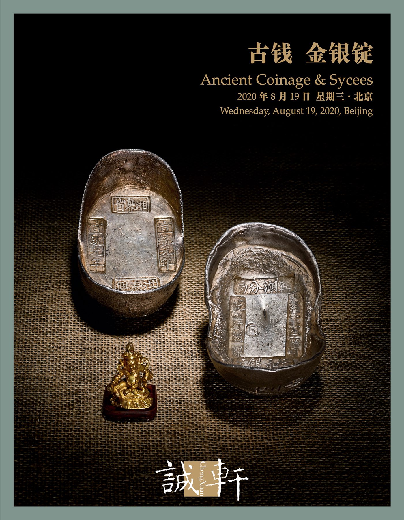 代安徽“光緒十六年拾月 蕪湖(hú)分局 皖岸鹽課 元和(hé)銀爐”五十兩銀錠一枚,重量:1868克,大(dà)通(tōng)督銷總局下屬蕪湖(hú)督銷分局上(shàng)解鹽課稅錠,是安徽官鑄稅銀中最罕少(shǎo)的品種之一,據目前相關資料記載,以“蕪湖(hú)分局”署名的五十兩稅錠不超過五枚,出現于公開(kāi)拍賣尚屬首次;拍品寶面寬闊,四個(gè)戳記加蓋整饬,字戳方正,銘文字口峭立,官鑄氣韻十足;另蓋“同”字小(xiǎo)圓戳一處,一側翅外陰打“壬〡〤〢”(壬142)花(huā)碼爐号戳,包漿自然天成,通(tōng)體(tǐ)無傷,是集罕少(shǎo)品種與上(shàng)佳品相于一身的鹽課稅錠佳品,GBCA MS61