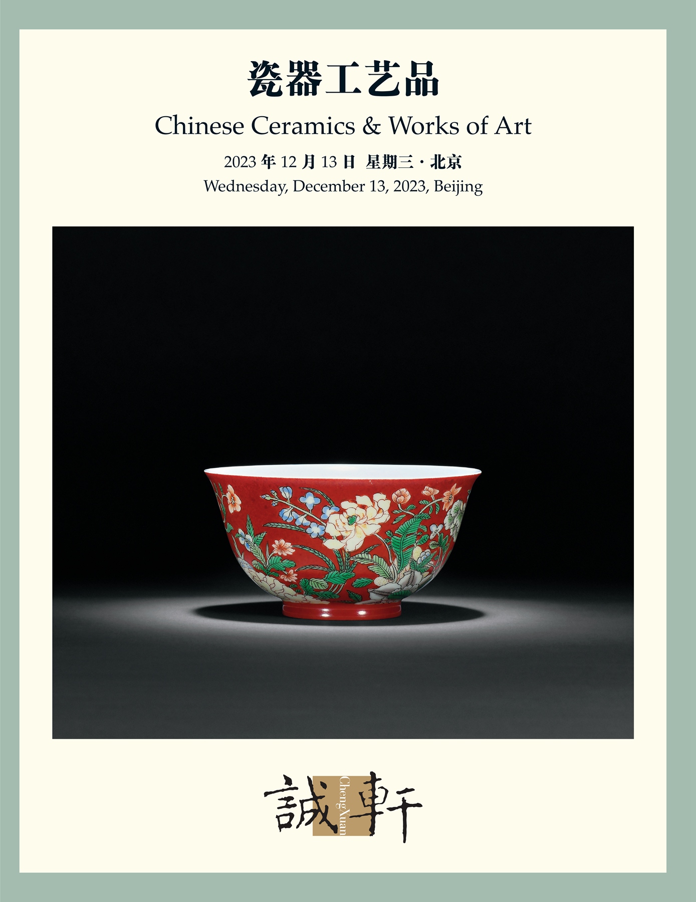 九秋圖碗創燒于康熙時(shí)期,雍乾兩朝沿襲其制(zhì),三朝均有(yǒu)以紅色為(wèi)地且青花(huā)署款者。随着宮廷檔案披露、學者進行(xíng)深入研究後,對此類署青花(huā)款之紅地花(huā)卉圖碗的認知逐漸明(míng)确,尤其台北故宮博物院藏有(yǒu)一對清康熙同品種花(huā)卉碗,乾隆時(shí)配制(zhì)的楠木匣上(shàng)刻“康熙年制(zhì)磁胎畫(huà)琺琅五色西番花(huā)紅地茶碗一對”、道(dào)光朝陳設檔案的相關記載,更為(wèi)此一品種劃歸琺琅彩提供了宮廷史料依據;耿寶昌《明(míng)清瓷器(qì)鑒定》中對此亦定名為(wèi)“康熙款抹紅釉地琺琅彩九秋碗”。可(kě)知兩岸故宮博物院的看法一緻,均認為(wèi)其屬于琺琅彩器(qì)。