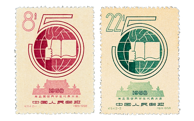 ★ 1958年紀54“學聯”未發行(xíng)郵票(piào)二枚全,将“國際學聯第五屆代表大(dà)會(huì)”誤印為(wèi)“第五屆世界學生(shēng)代表大(dà)會(huì)”,品相完美,極為(wèi)珍罕,上(shàng)品